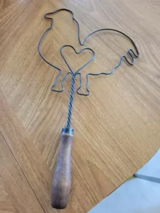 3- وهذه القطعة التي تبدو على شكل دجاجة وشكل قلب بداخلها مع وجود مقبض لها.